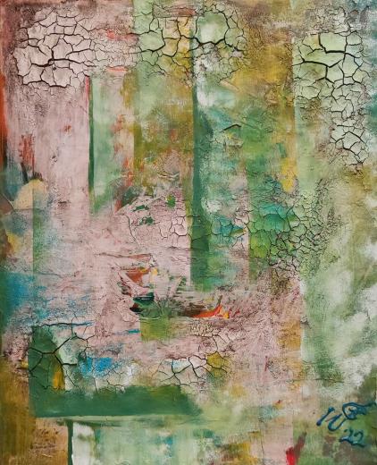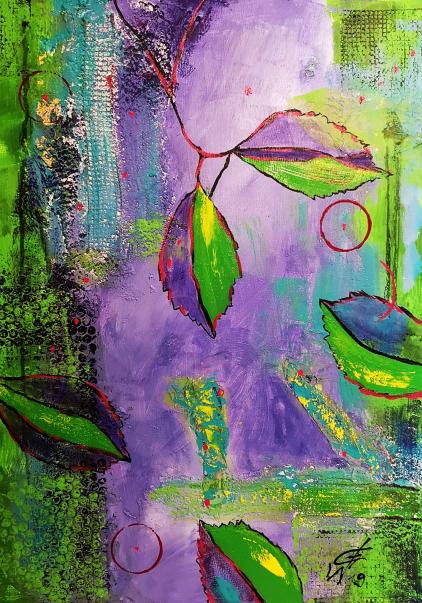 Blattgrün, Micked Media auf Leinwand, Höhe 70 cm Breite 50 cm