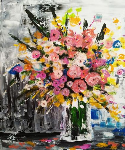 Blumen in der Vase, Acrylfarbe, Höhe 60 cm Breite 50 cm Tiefe 4 cm