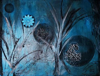 Nachtblumen, Acrylfarbe, Höhe 80 cm Breite 80 cm