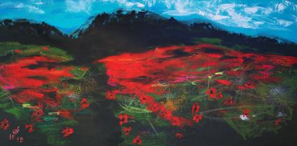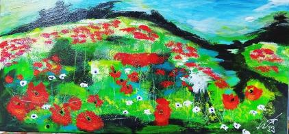 Mohnlandschaft, Acrylfarbe, Höhe 50 cm Breite 100 cm