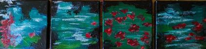 Teich bei Mondschein, Acrylfarbe, 4Leinwände je Höhe 20 cm Breite 20 cm