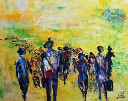 Völkerwanderung bis zu unserer Haustüre, Acrylfarbe, Höhe 80 cm Breite 100 cm Tiefe 4 cm