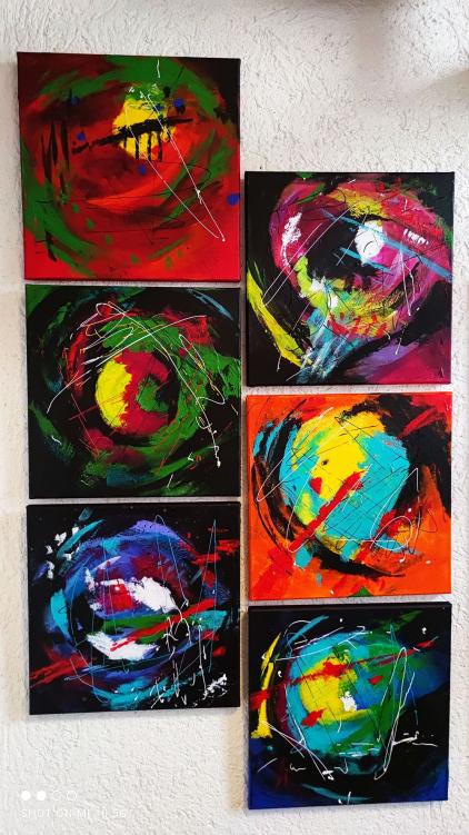 Abstrakte Bilderreihe, Acrylfarbe, 6 Leinwände je Höhe 40 cm Breite 40 cm