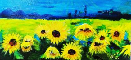 Sonnenblumenfeld, Acrylfarbe, Höhe 50 cm Breite 100 cm